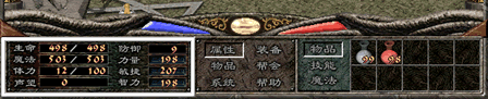 表示角色的魔法值:显示为现精力/最大魔法。当魔法值为0时角色将无法使用魔法.现魔法的数值以蓝色条状显示在中央的下部。